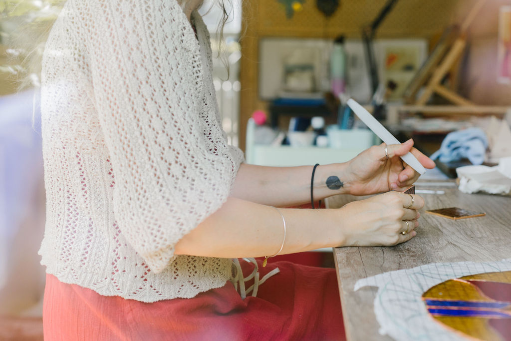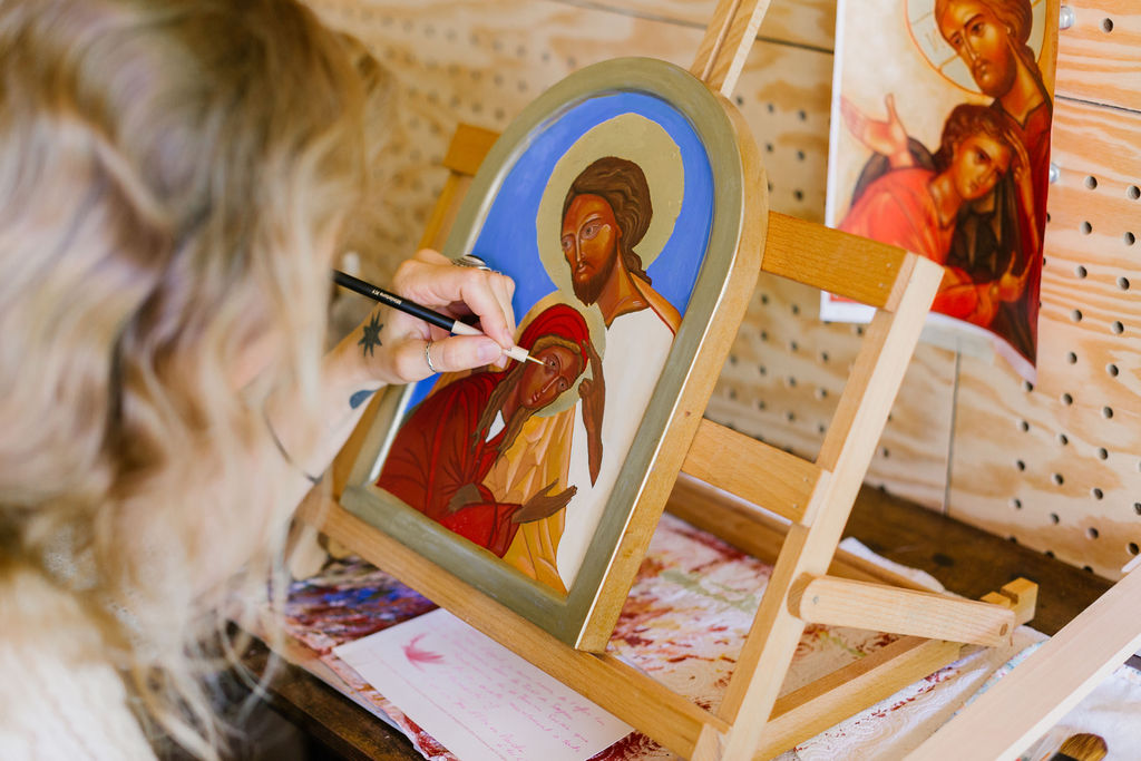Cet atelier est né de cet Appel qui ne m’a plus quittée : relier foi et beauté, silence et création. Et offrir autour de moi un éclat de sacré en rappel de Sa présence.