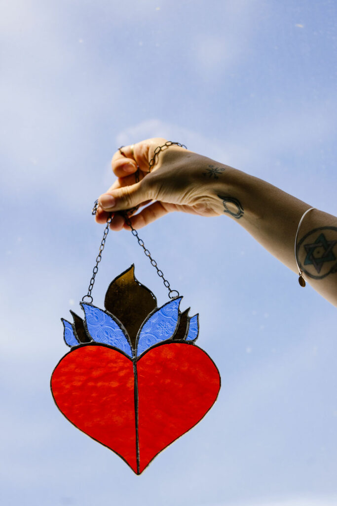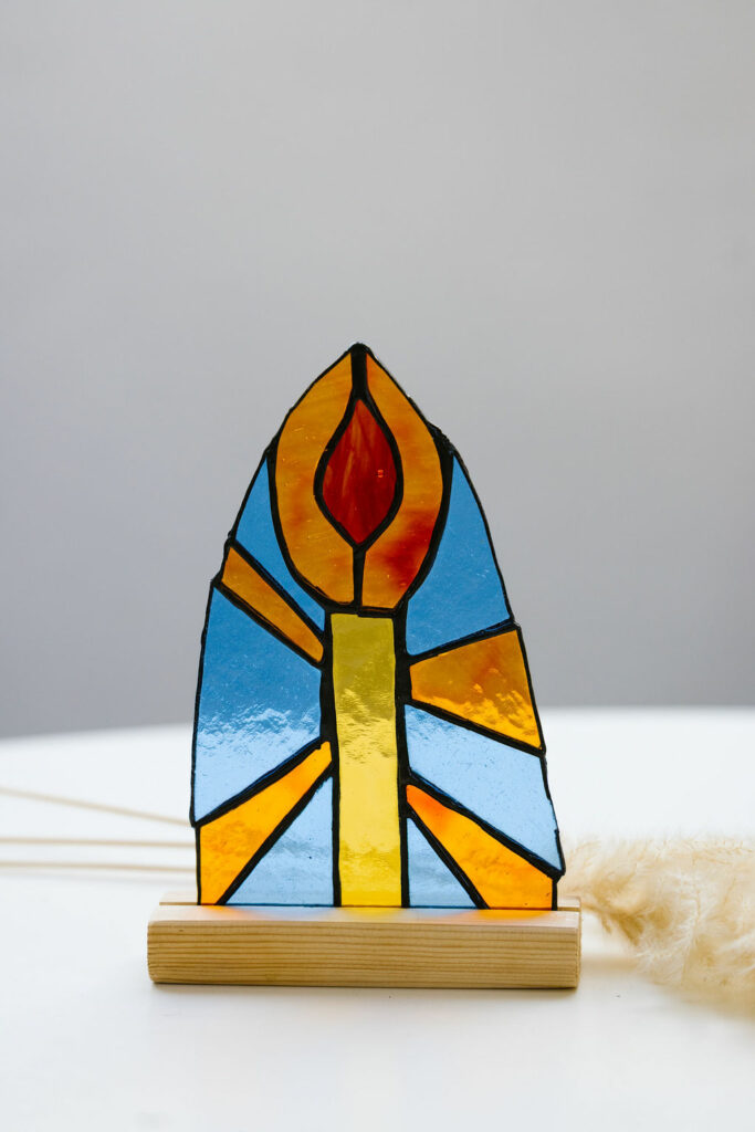 Chaque pièce est réalisée avec amour, dans le silence et le recueillement, afin d’ouvrir l’espace à la grâce et que chacune d’entre elles en porte la mémoire. Créer un vitrail ou écrire une icône, pour moi, ce n’est pas seulement de l’artisanat… C’est une offrande. Une ouverture de coeur à Celui qui est Lumière. Afin que le vitrail devienne guide vers la transparence qui se laisse traverser et révéler.